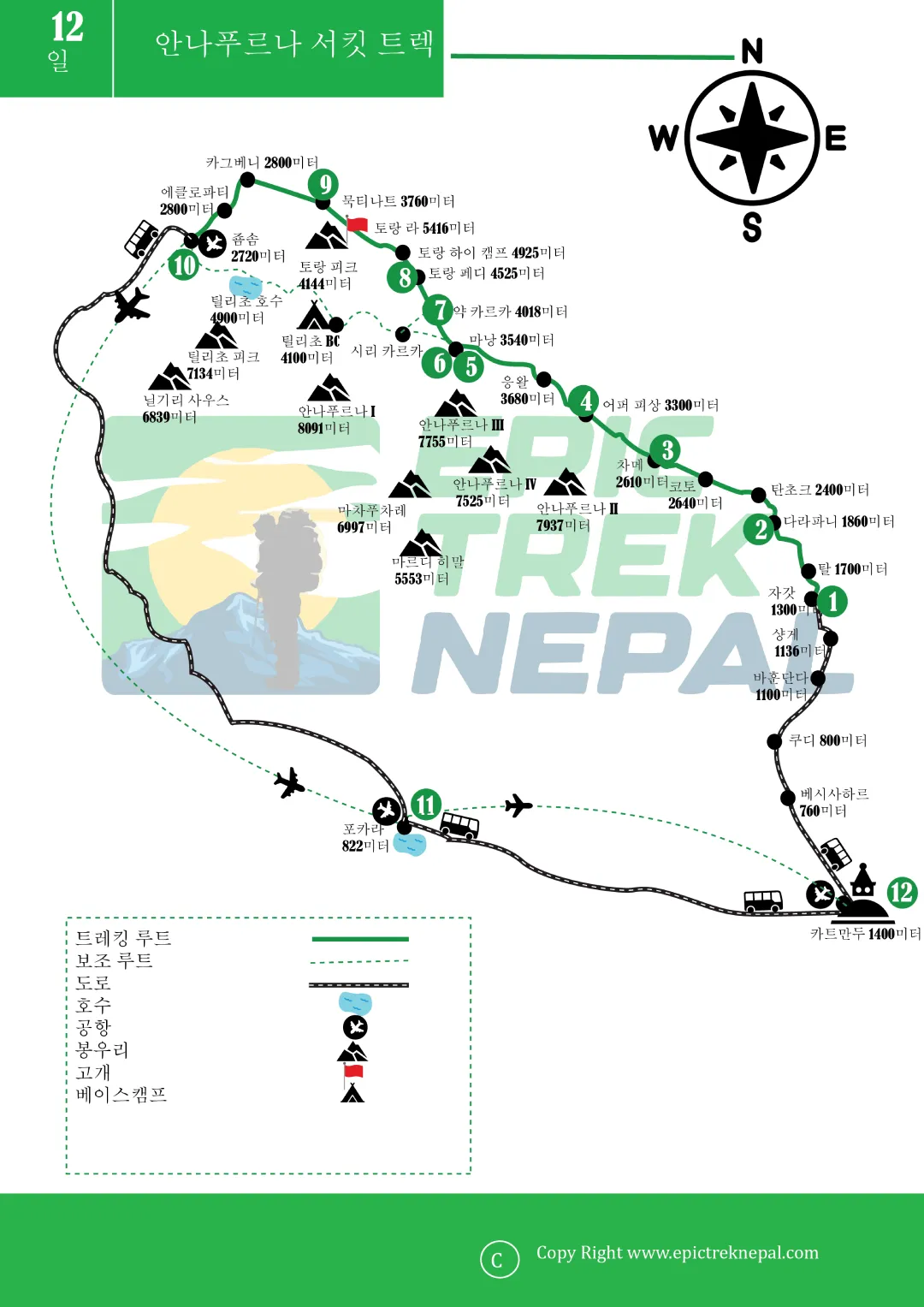 안나푸르나 베이스 캠프를 포함한 모든 네팔 트레커를 위한 필수 카드.