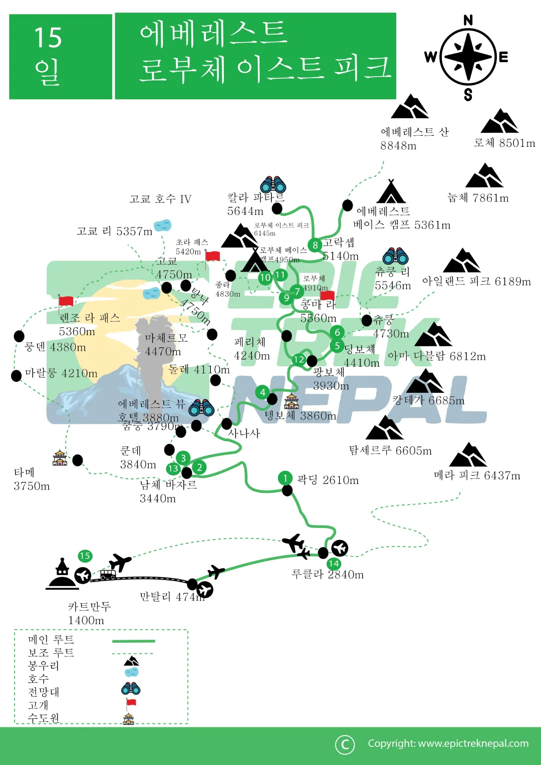 Max. Altitude: 4950m./16,240ft. (로부체 피크 베이스 캠프)
