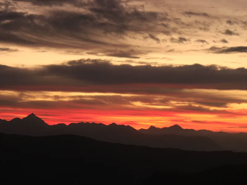오늘은 경사가 좀 더 가파른 구간을 오르며 Pikey Peak Base Camp로 향합니다. 소나무와 진달래 숲을 지나며 아름다운 계곡 전망이 자주 열립니다. Base Camp에서의 석양은 잊지 못할 순간이 될 것입니다.