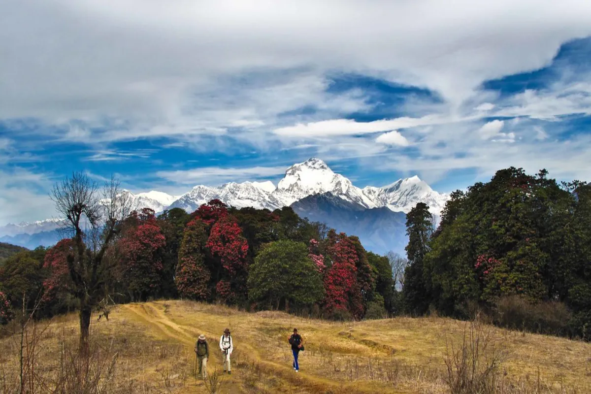 봄은 이 트레킹을 하기에 가장 좋은 시기로 꼽힙니다. 기온이 점점 따뜻해지고, 매일 히말라야의 멋진 풍경을 볼 수 있어요. 특히 3월 중순부터 4월 말까지는 낮은 지역의 철쭉 숲이 활짝 피어서 빨강, 분홍, 흰색 꽃들이 주변을 화사하게 만들어 줍니다. 긴 겨울이 지나고 자연이 다시 살아나는 느낌을 강하게 받을 수 있어요.