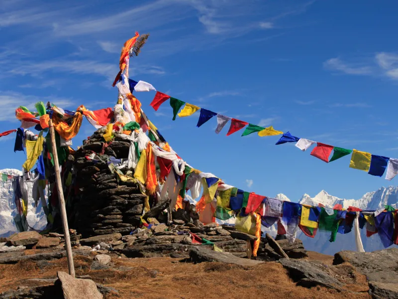 트레킹 중에는 셰르파가 밭에서 일하거나 가파른 길을 따라 짐을 나르는 모습을 볼 수 있고, 지나가면 친근하게 “나마스떼” 인사를 받기도 합니다. 기도 깃발이 걸린 작은 돌집이나 나무집, 불교 사원, 마니벽, 곰파 등은 이 지역의 영적 삶과 일상이 공존하는 모습을 보여줍니다.
