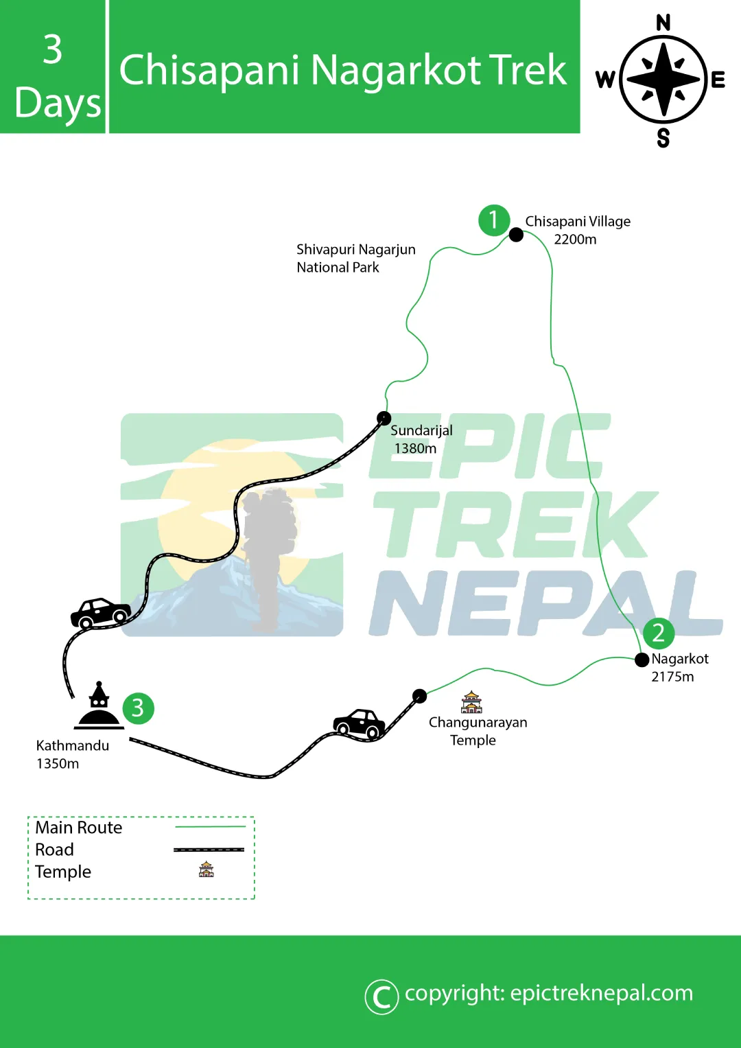 Chisapani Nagarkot Trek-3 Days - Distance, Duration, and Altitude