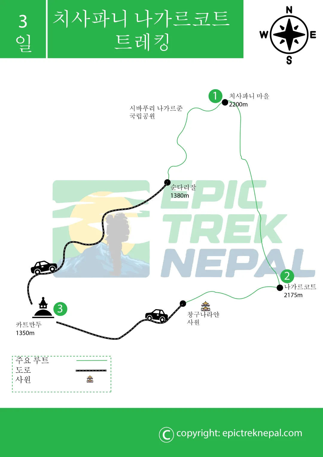 | 치사파니에서 나갈코트까지 | 26 KM | 6~7시간 | 2175 m. |