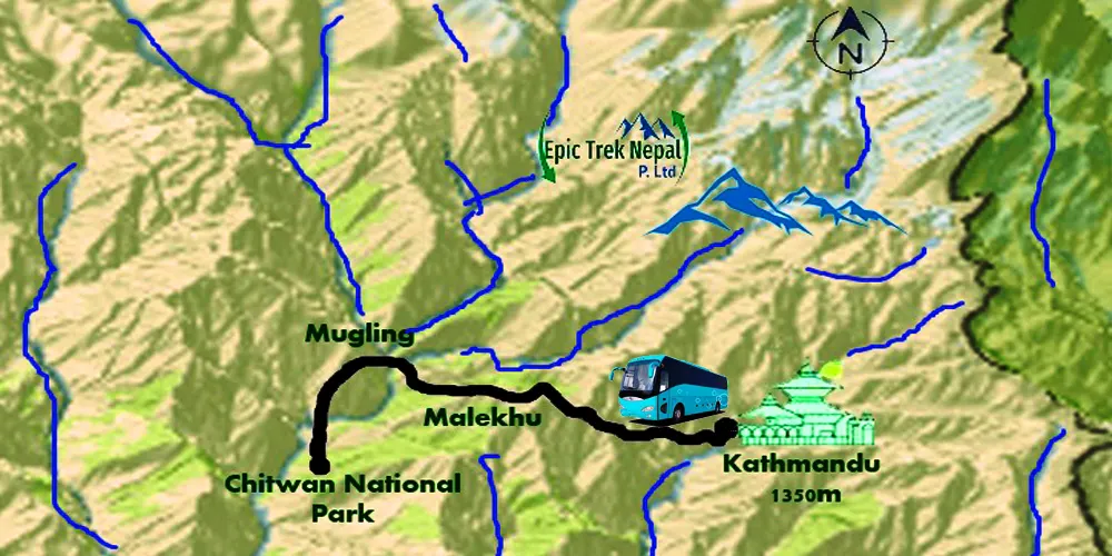 Trip Map of Chitwan Tourist Bus Ticket
