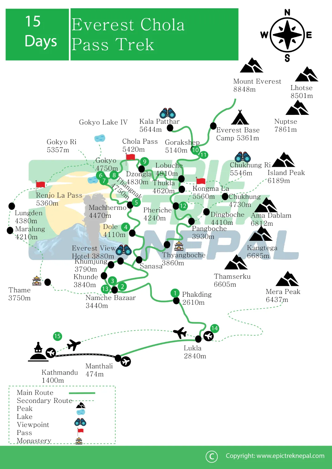 Gokyo Chola Pass Trek - Distance, Duration, and Altitude