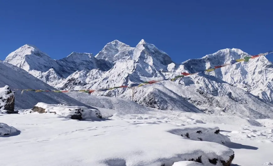 The highest point of the trek is Gokyo Ri at 5,357 meters, offering unmatched 360° views of the surrounding peaks. After completing the circuit and exploring the lake system, trekkers retrace their steps back to Lukla for the return flight to Kathmandu, completing this unforgettable Himalayan adventure.