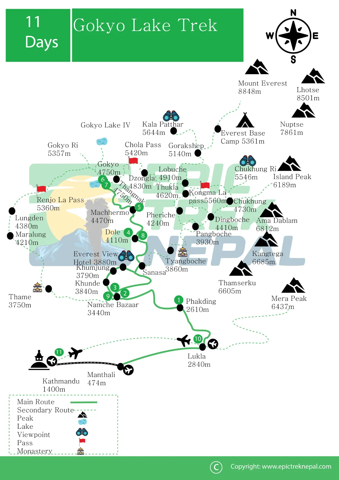 Gokyo Lakes Trek - Distance, Duration, and Altitude