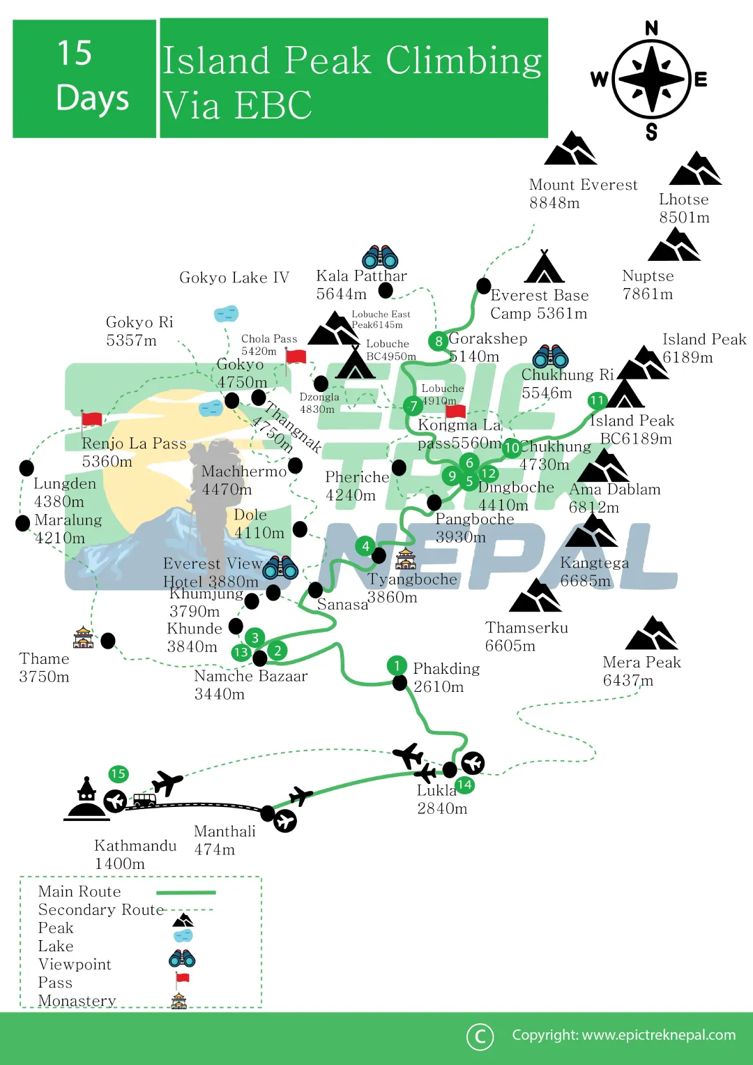Island Peak Climb with EBC – Epic 18 Days Himalayan Adventure - Distance, Duration, and Altitude