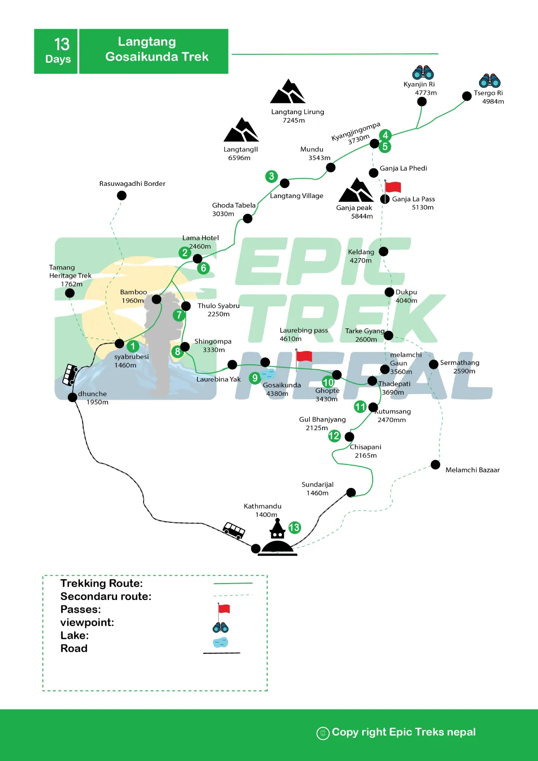 Langtang Gosaikunda Trek - Distance, Duration, and Altitude