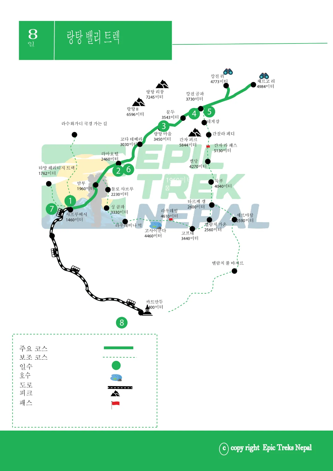 랑탕 밸리 트레킹 - Distance, Duration, and Altitude