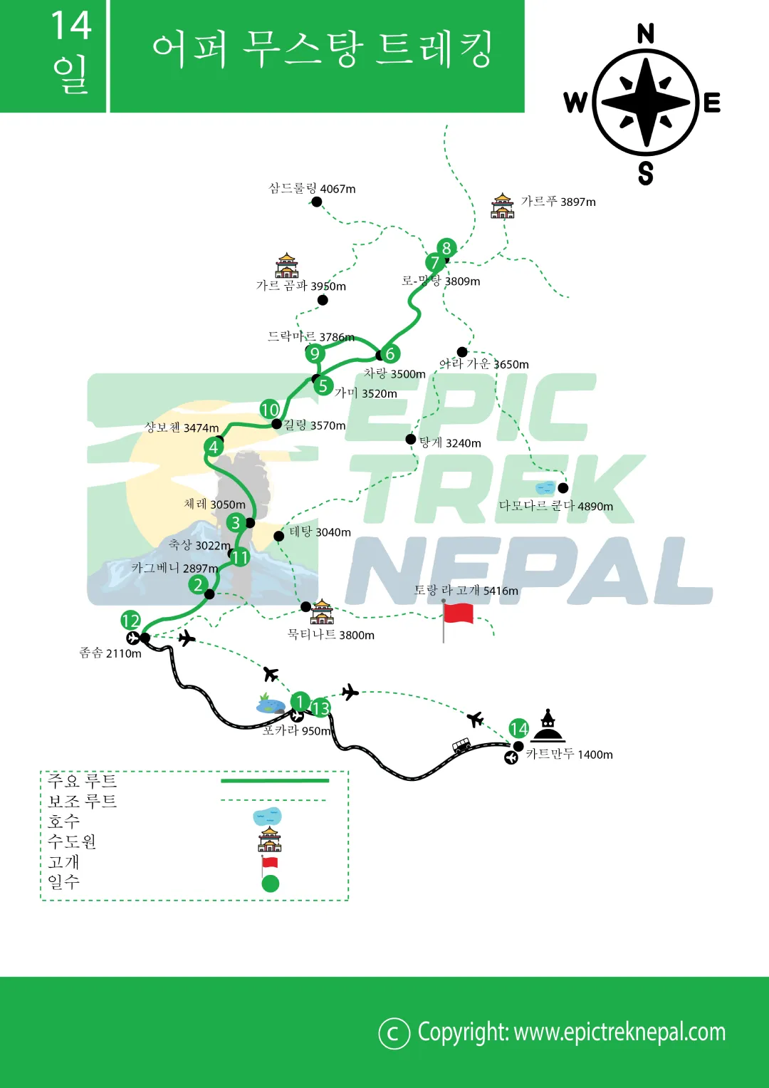 Itinerary of 어퍼 무스탕 트레킹